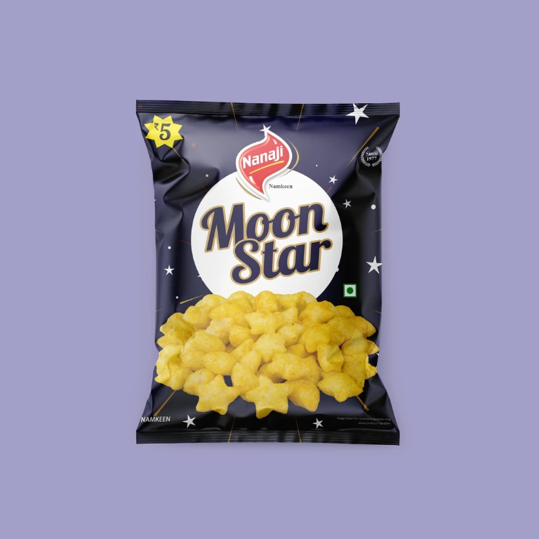Nanaji Moon Star is a fun, bite-sized snack that’s light, crispy, and full of flavor. Shaped like moons and stars, it’s a favorite among kids and adults alike!